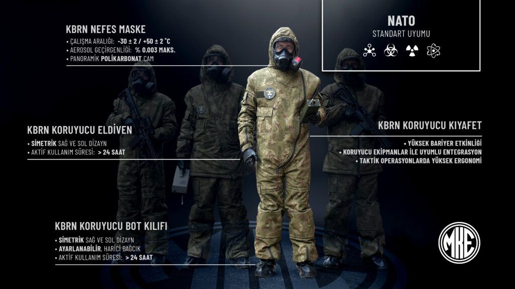 NATO standartlarına uygun olarak geliştirilen bu ekipmanlar sayesinde Mehmetçiğin, her türlü KBRN tehdidine karşı hazır ve korunaklı olması hedefleniyor.